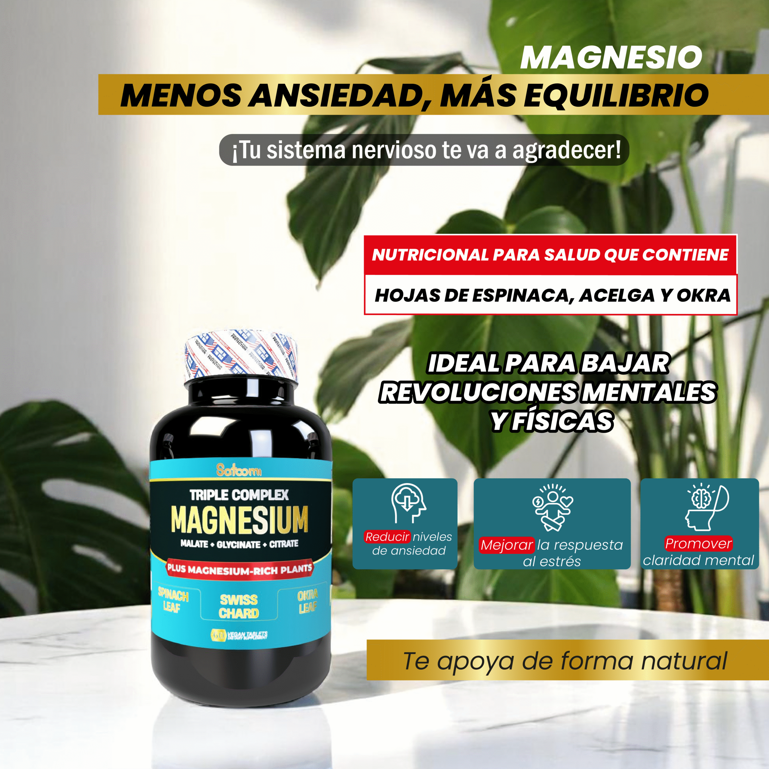 El magnesio participa en más de 300 funciones bioquímicas, por lo que su suplementación es clave para mantener un estado óptimo de salud, tanto física como mental.